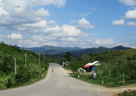 Nan verließ ich an nächsten Morgen. Der altersschwache Minibus fuhr eine halbe Stunde verspätet los und brauchte rd. 3 Stunden nach Huai Kon. In der bergigen Gegend ging es zum Teil nur mit 10 km/h bergauf.